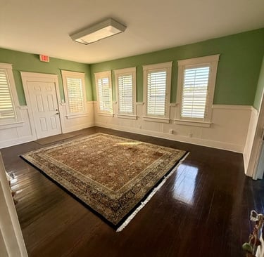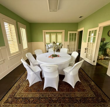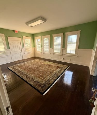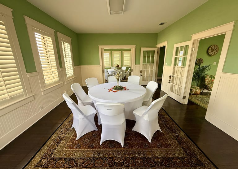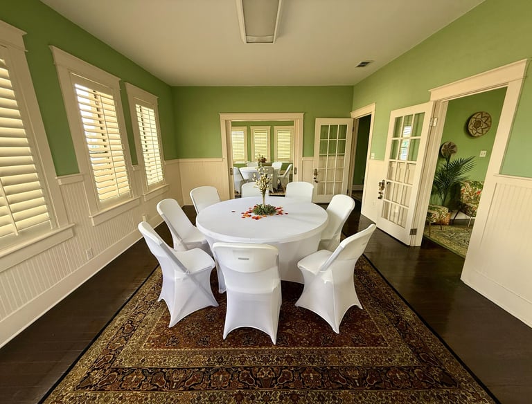 From the moment you step inside, the space tells its story. Original wood floors, classic glass door knobs, and historic architectural details reflect the craftsmanship of a bygone era, while thoughtful updates ensure comfort and functionality for today’s celebrations. Every element was intentionally preserved to maintain the building’s soul while creating a versatile venue for gatherings of all kinds.